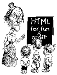 Now I guess is a good time to yap a bit about syntax. You notice here and there I use quotation marks, these are important. You have no idea how many times I made a page and it was all screwed up... I mean all screwed up because of a single missing or misplaced quotation mark or a missing space or a missing greater than > sign . Someday we will be separated from this kind of coding, but for now we just have to be careful. Another thing is my use of CAPITAL LETTERS for most of my marking up. This is just personal preference. I find that the tags stand out more when using all caps. You could just as well use <font> instead of <FONT>. You can even use <fOnT> if that's what trips yer trigger.